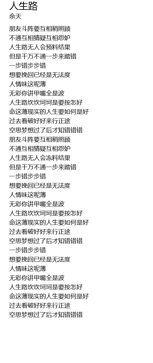 | [00:43.28] | ren sheng lu wu ren hui yu liao jie guo |