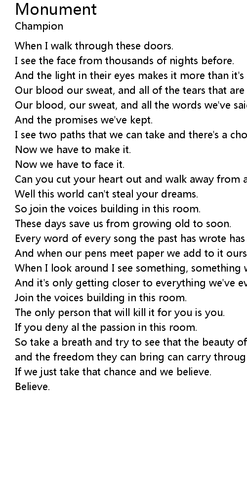 Every word of every song the past has wrote has become our anthem. |