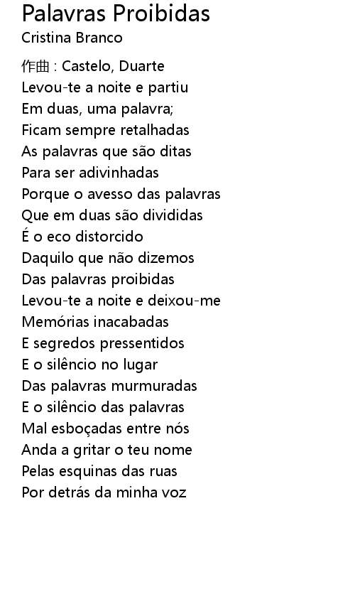 | Song | Palavras Proibidas |