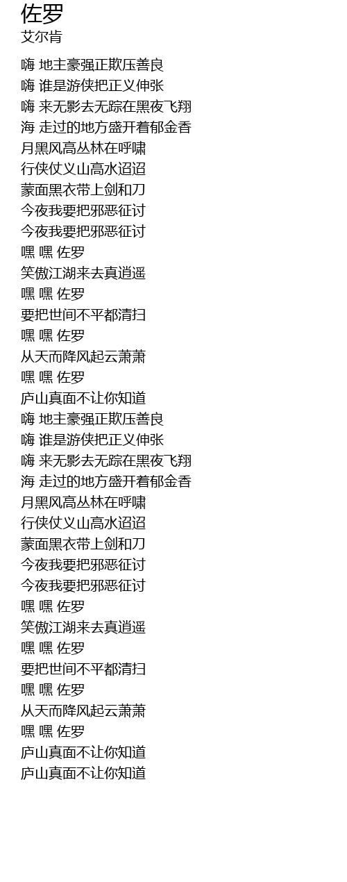 | [01:37.990] | 嘿 嘿 佐罗 |