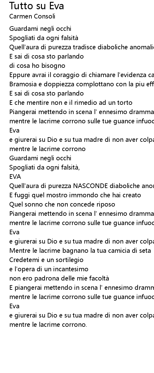 | Song | Tutto su Eva |