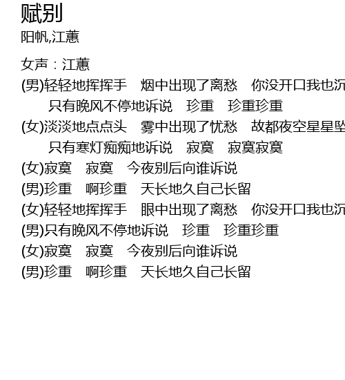 | (男)珍重 啊珍重 天长地久自己长留 | |