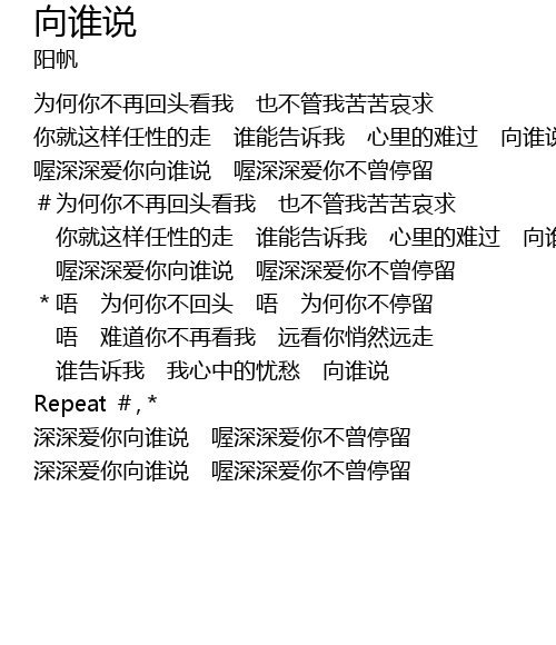 | #为何你不再回头看我 也不管我苦苦哀求 | |