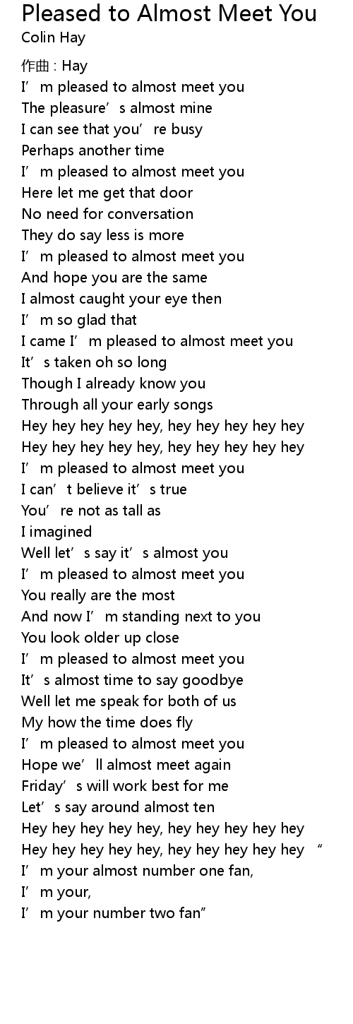 | I' m pleased to almost meet you | |