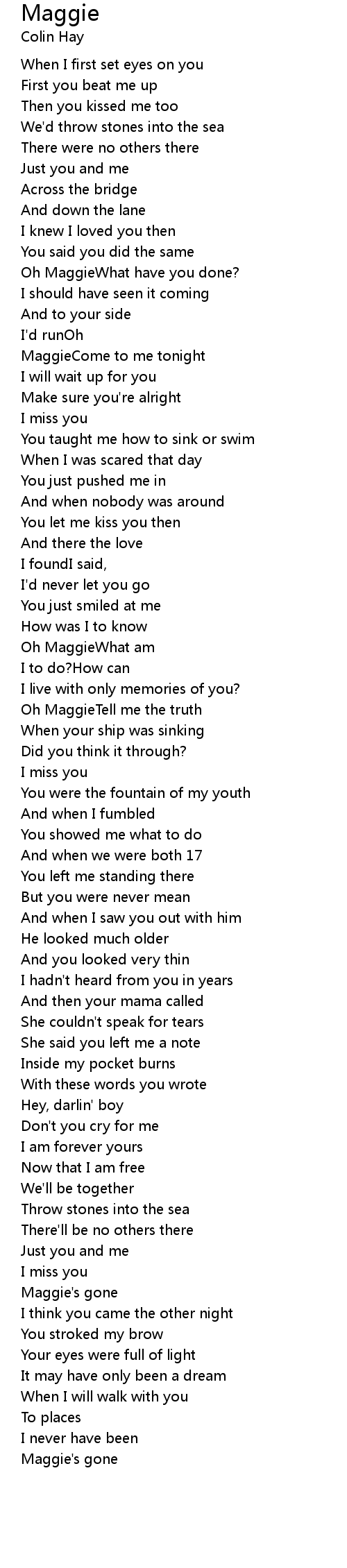 Oh MaggieTell me the truth |