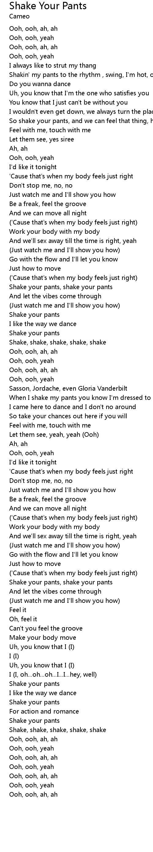 | Shakin' my pants to the rhythm , swing, I'm hot, ow | |