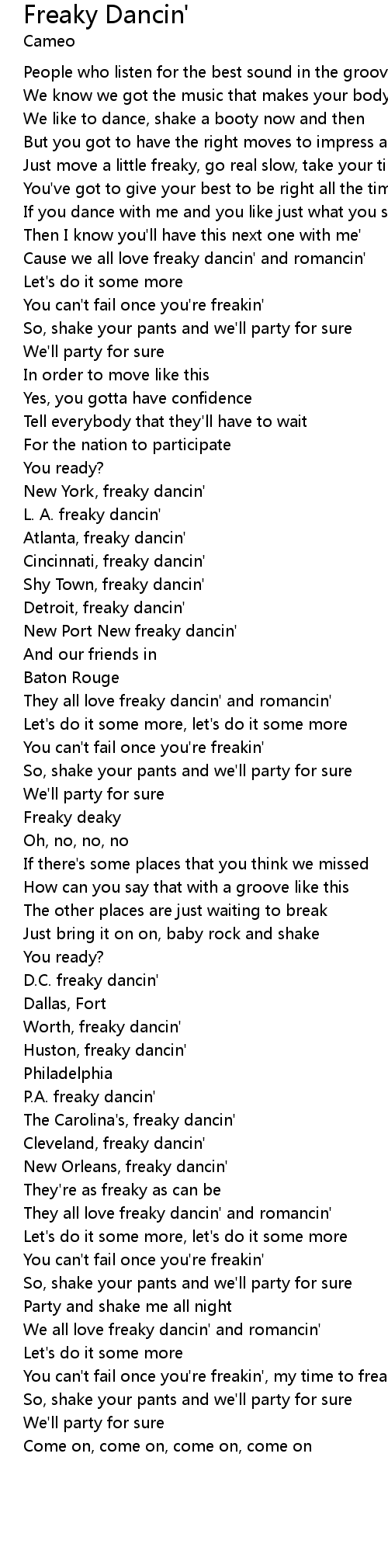 | Cause we all love freaky dancin' and romancin' | |