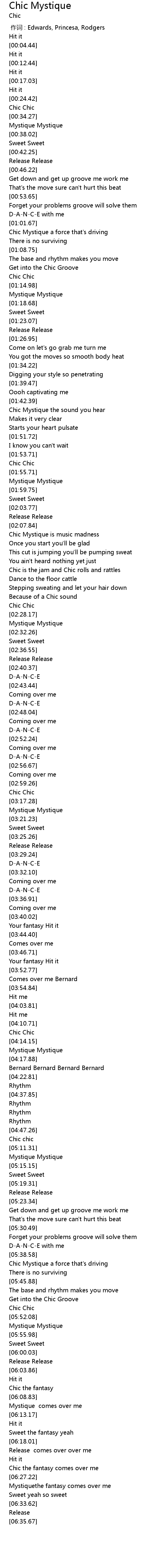| [05:41.47] | Chic Mystique a force that' s driving |