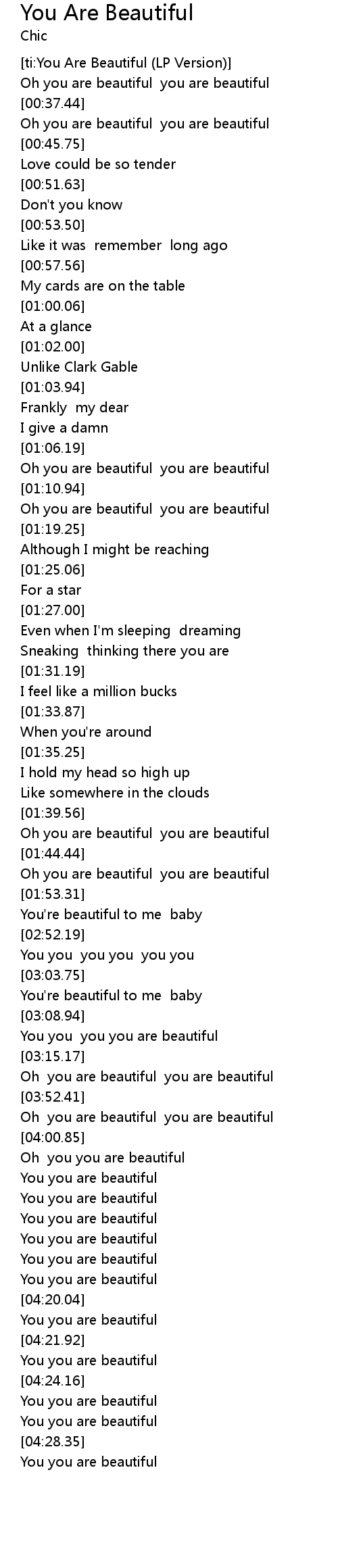 | [00:42.44] | Oh you are beautiful you are beautiful |