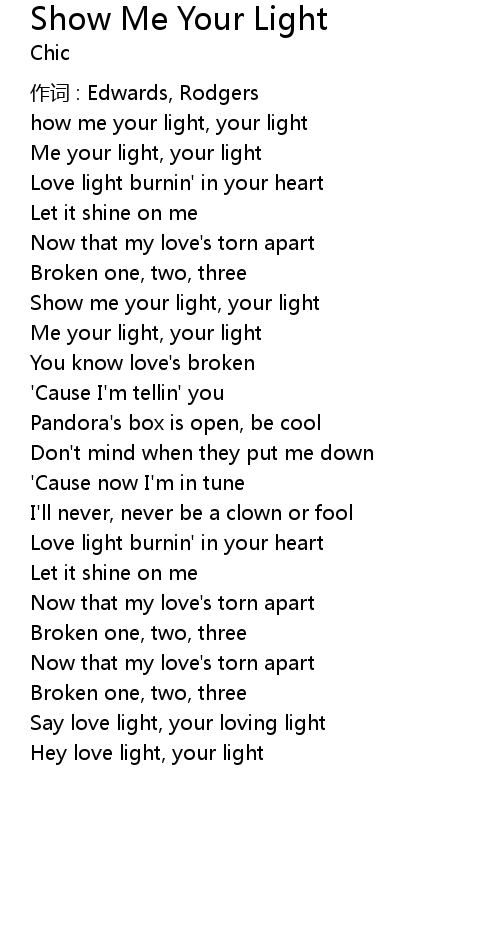 | Show me your light, your light | |