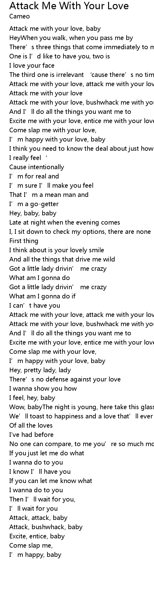 | Attack me with your love, attack me with your love, baby | |