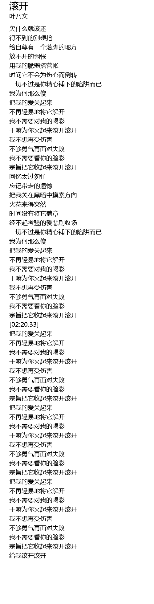 | [03:57.76] | gěi wǒ gǔn kāi gǔn kāi |