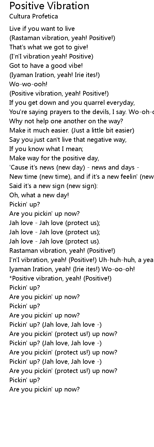 (Positive vibration, yeah! Positive!) |