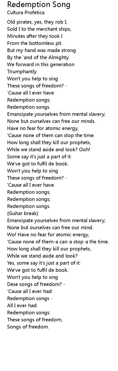 Redemption songs. |