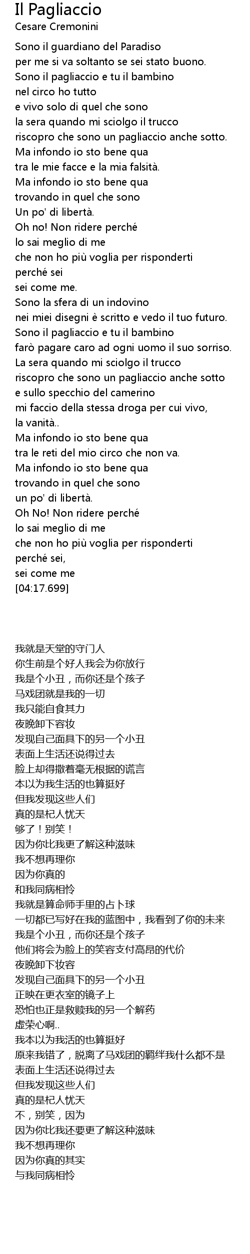 | [02:42.929] | Sono il pagliaccio e tu il bambino |