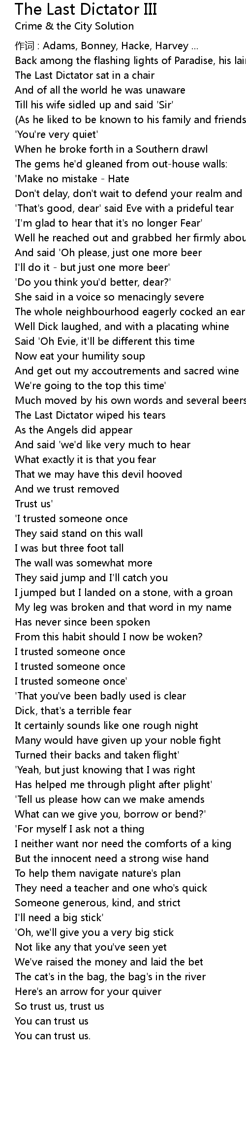 | 作词 : Adams, Bonney, Hacke, Harvey ... | |