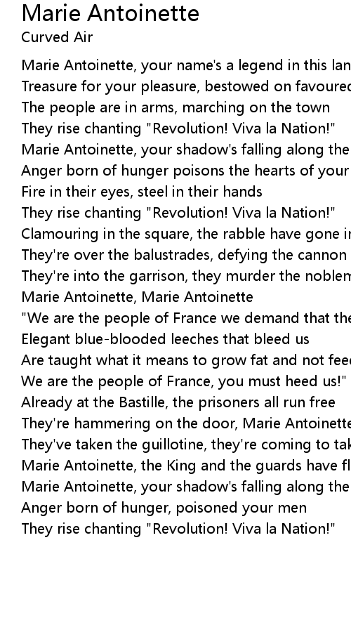 Marie Antoinette, your name's a legend in this land |