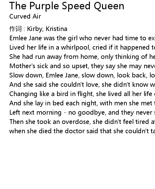 | Song | The Purple Speed Queen |