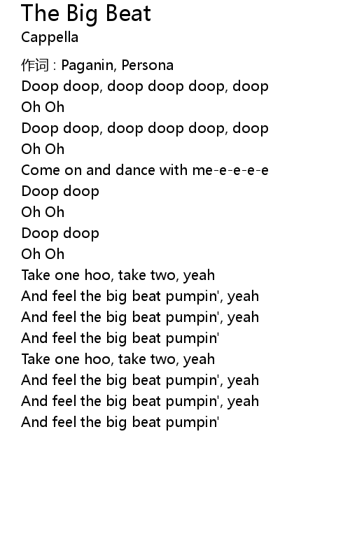 | And feel the big beat pumpin', yeah | |