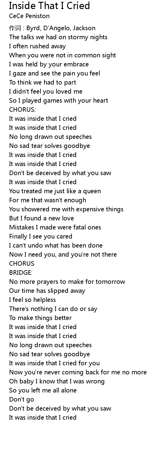 | Song | Inside That I Cried |