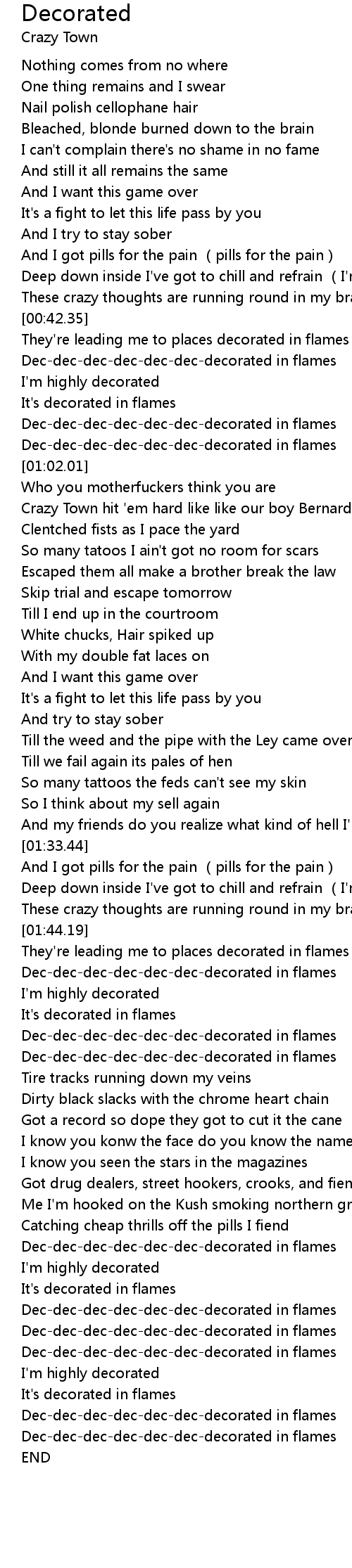 | [02:43.01] | Dec-dec-dec-dec-dec-dec-decorated in flames |