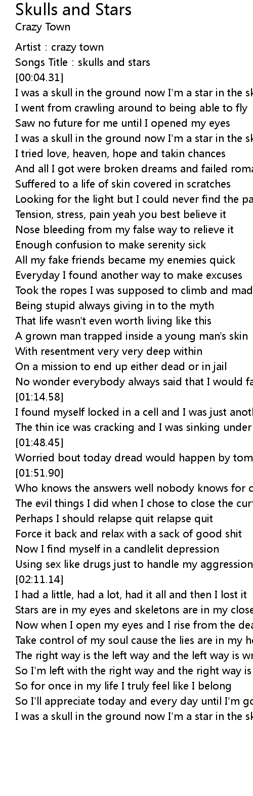 | [03:00.67] | I was a skull in the ground now I' m a star in the sky... |