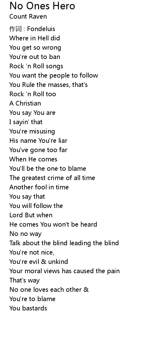 | Song | No Ones Hero |