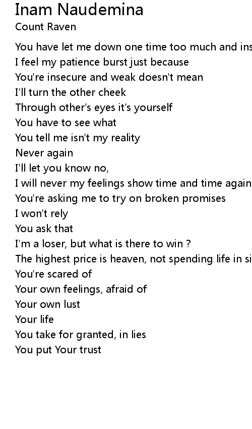 You have let me down one time too much and inside |