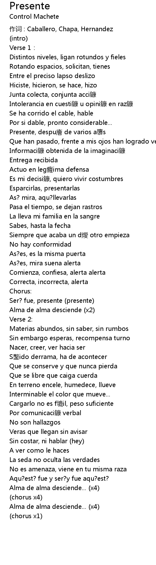 | 作词 : Caballero, Chapa, Hernandez | |