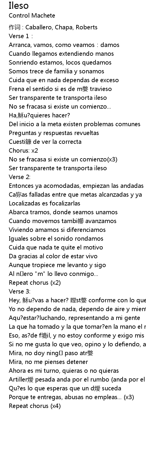 | 作词 : Caballero, Chapa, Roberts | |