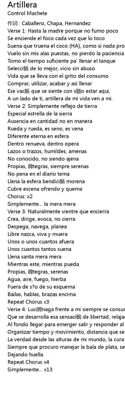 | 作词 : Caballero, Chapa, Hernandez | |