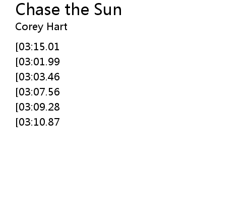 | [03:18.45][03:03.46][01:49.15][01:34.07][00:26.37] | As I chase the sun |