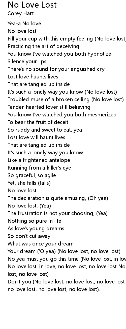 No yea must you go this time (No love lost, in love, no love lost, no love lost No love lost, in love, no love lost, no love lost No love lost, in love, no love lost, no love lost) |