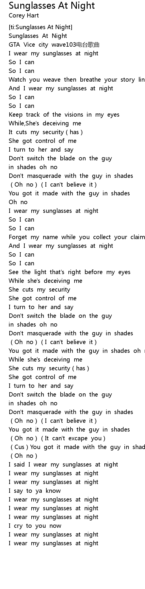 | [ti:Sunglasses At Night] | |