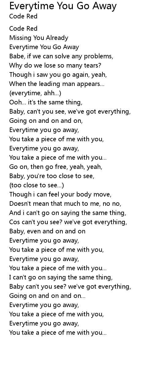 Everytime you go away, |