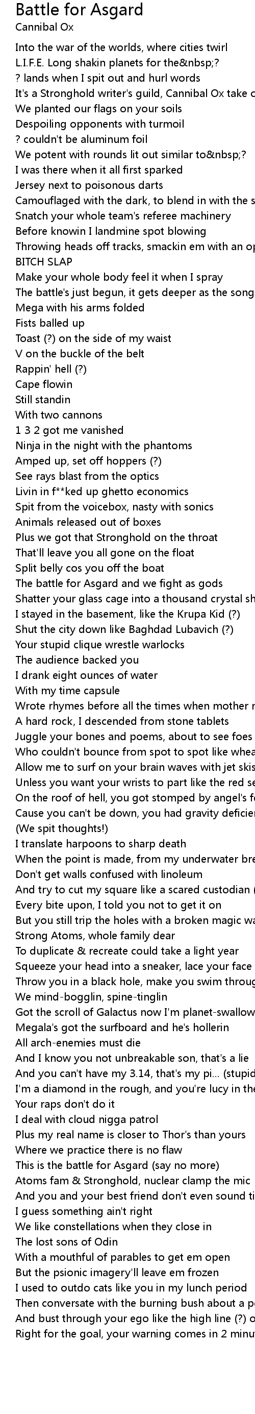 It's a Stronghold writer's guild, Cannibal Ox take over your herd |