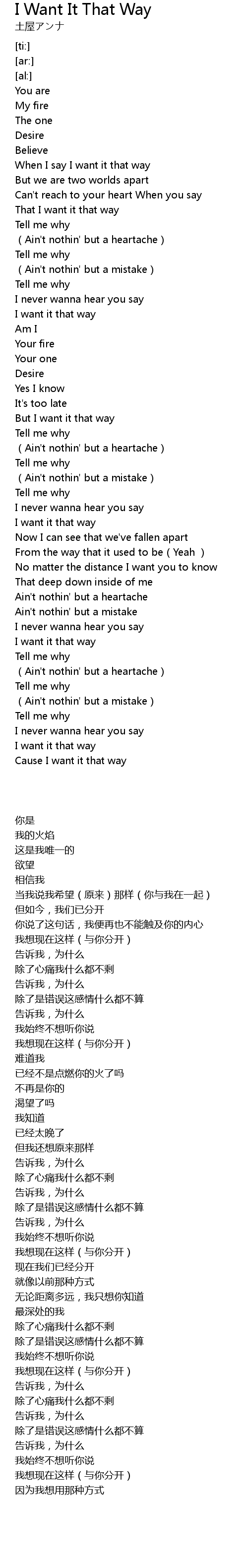 | [00:43.29] | That I want it that way |