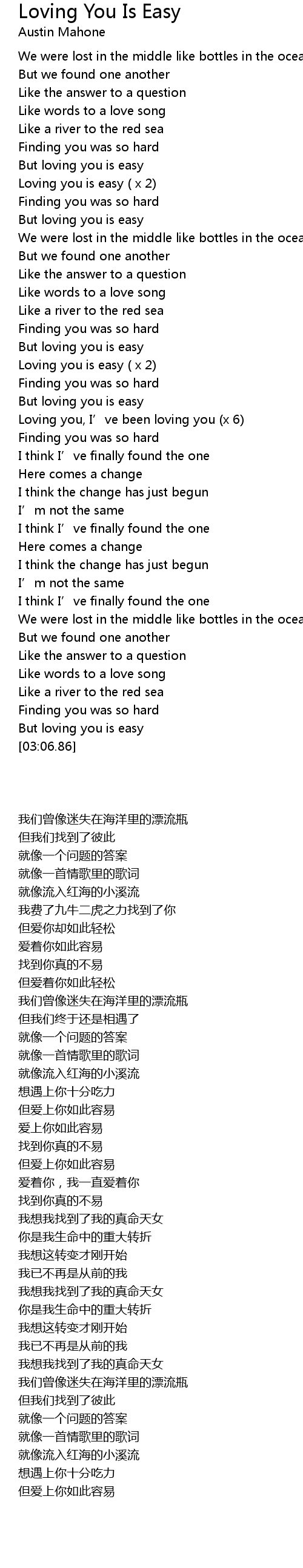 | [03:01.66] | But loving you is easy |