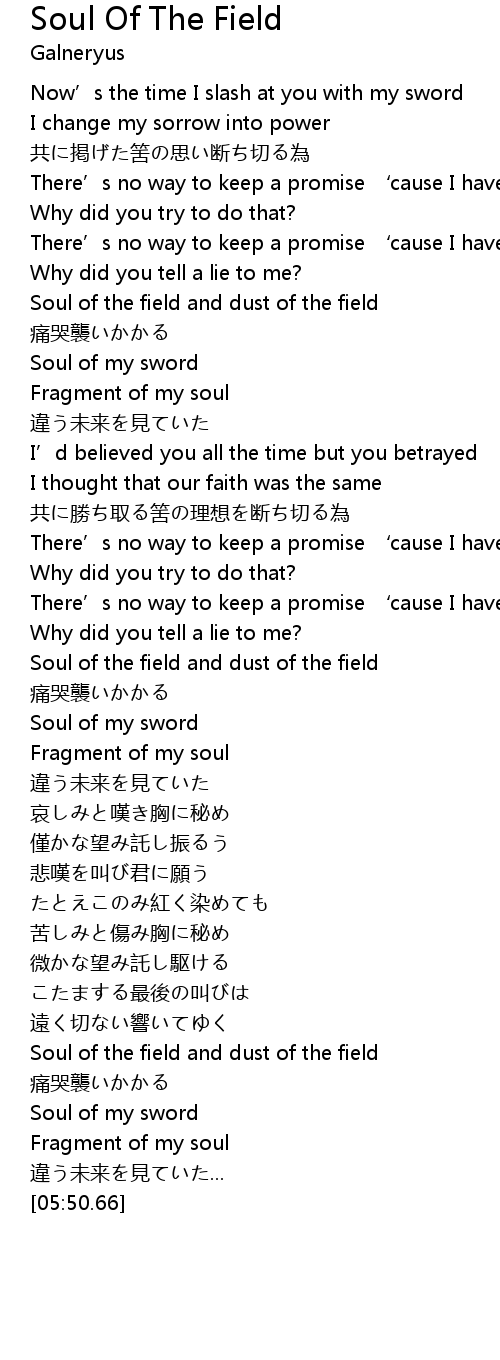 | [01:35.60] | There’s no way to keep a promise ‘cause I have to guard my life |