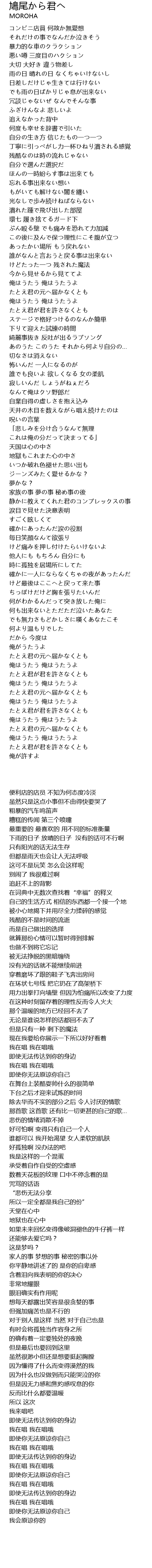 | [00:34.23] | それだけの事でなんだか泣きそう |