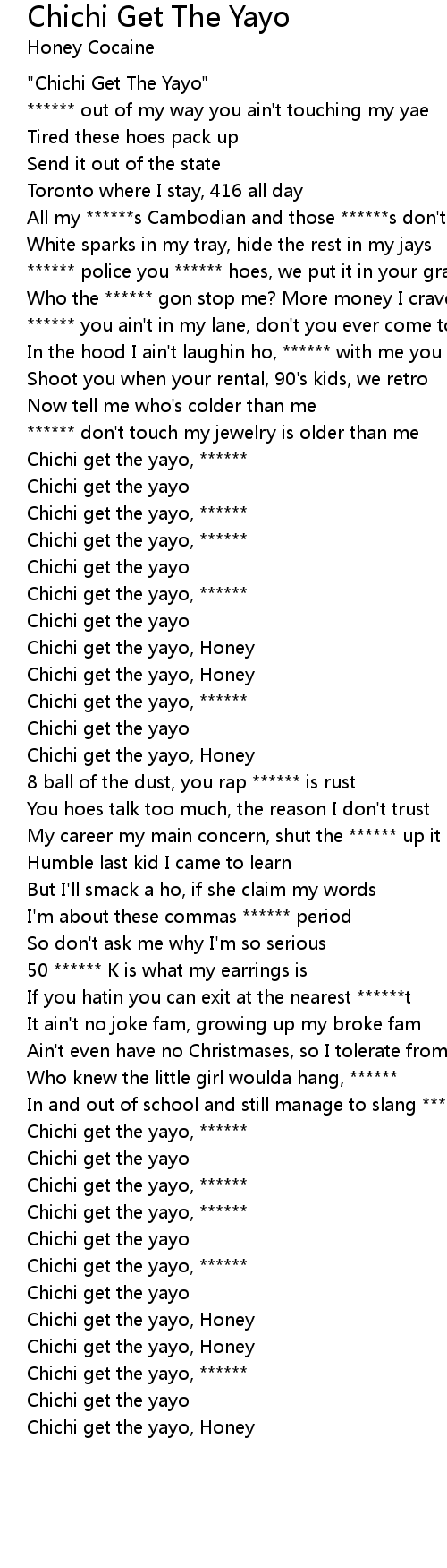 Chichi get the yayo, Honey |