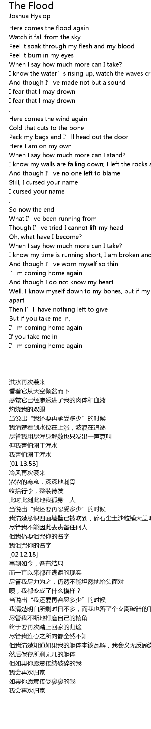 | [00:25.55] | Here comes the flood again |
