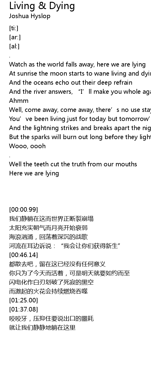 | [00:23.10] | At sunrise the moon starts to wane living and dying |
