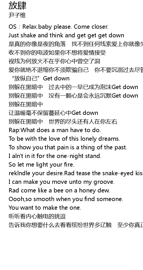 | " fàng zòng zì jǐ" Get down bié duǒ zài hēi àn zhōng guò qù zhōng de yī zǎo yǐ chéng wéi pào mò Get down | |