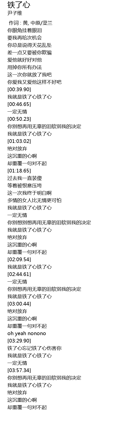 | [02:40.17] | wǒ jiù shì tiě le xīn tiě le xīn |