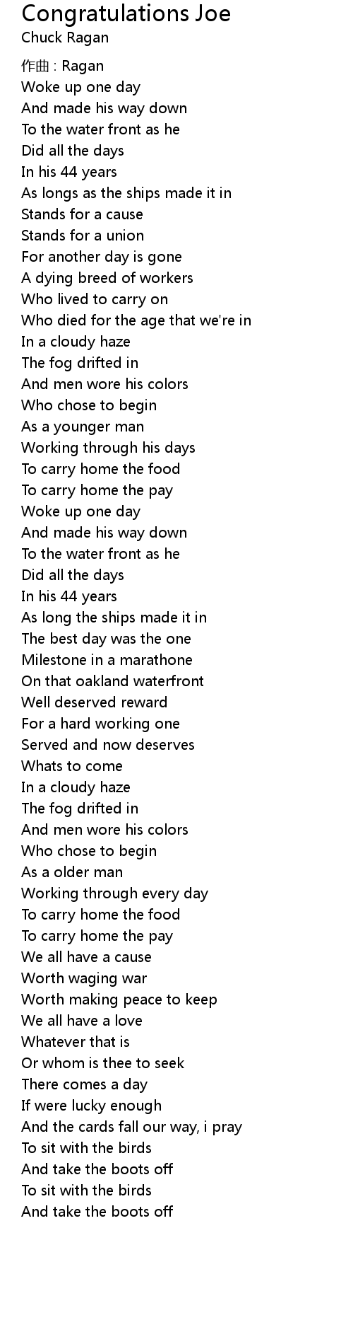 | Song | Congratulations Joe |