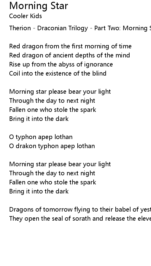 Therion - Draconian Trilogy - Part Two: Morning Star |