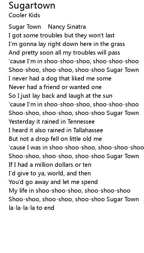 Shoo-shoo, shoo-shoo, shoo-shoo Sugar Town |