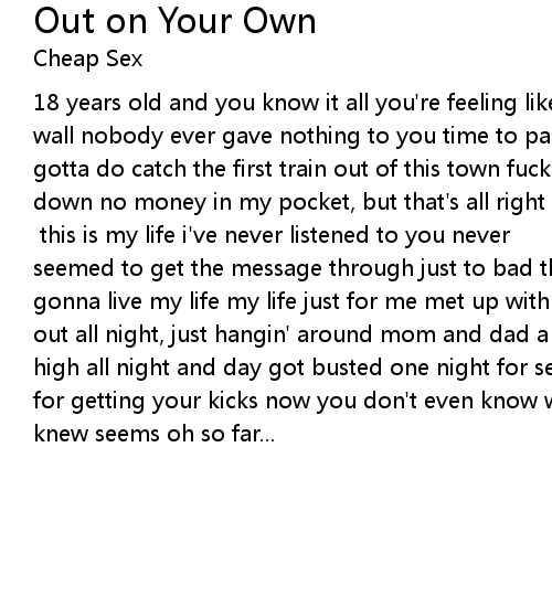 18 years old and you know it all you're feeling like your life's up against the wall nobody ever gave nothing to you time to pack your bags, do what you've gotta do catch the first train out of this town fuck off to all those who put me down no money in my pocket, but that's all right im out in the town in the city tonight... [Chorus: (x2)] this is my life i've never listened to you never seemed to get the message through just to bad that you never could see now im gonna live my life my life just for me met up with the wrong kids in the town out all night, just hangin' around mom and dad a thousand miles away drunk and high all night and day got busted one night for selling a fix big price to pay for getting your kicks now you don't even know who you are and what you once knew seems oh so far... |