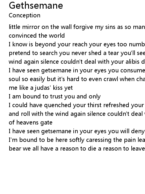 I have seen getsemane in your eyes you will deny me again forever as long as |